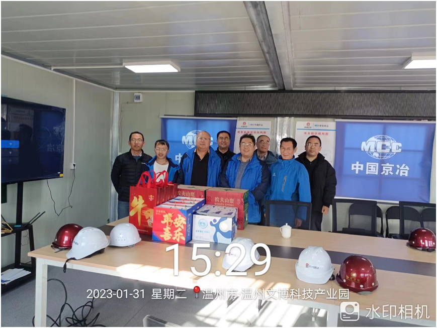 1月31日正月初十,公司总经理王立恒、总工程师刘佳庆、副总经理陆参一行前往我公司温州浙江海上风电大容量风机制造出口基地(一期)工程项目监理部慰问及检查指导工作。该项目是金风科技温州深远海海上风电零碳总部